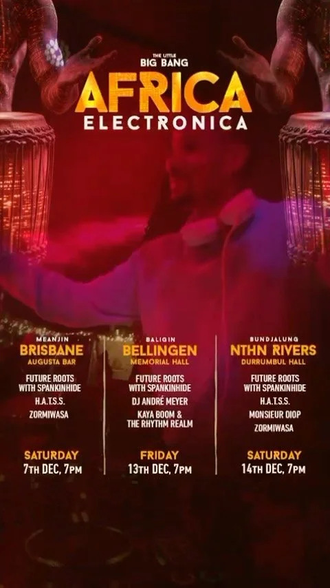 The music played by Future Roots reflects a rich life journey that has allowed him to be able to draw directly on his experiences of having seen and connected with so many cultures and ways of life through travel and music. Future Roots view of the world and the music he makes has been strongly influenced by his upbringing in Australia and India by his Moroccan/Ghanian father and Australian mother, travelling across Asia, Africa the Middle East and Europe in his formative years, time spent in his ancestral homeland of North and West Africa, as well as his connection to traditional and emerging cultures closer to home in the Australasian/Pacific region.